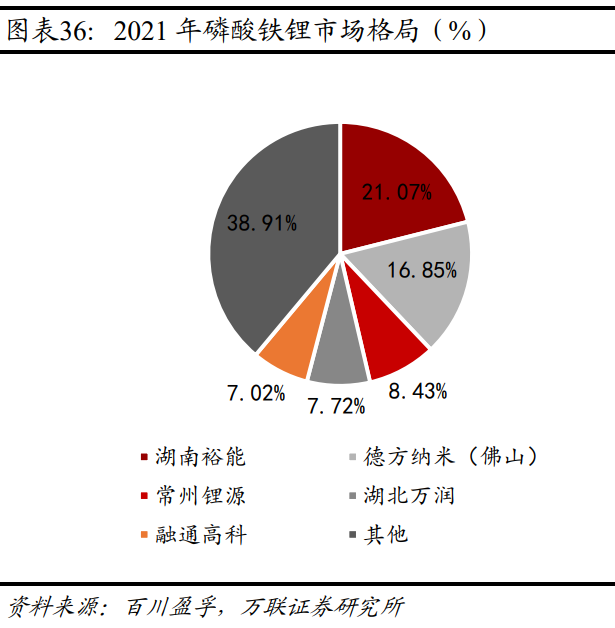从工艺流程上说,磷酸铁锂主要由碳酸锂和磷酸铁两个部分组成,磷酸铁生产链为磷矿-高纯磷酸/工业磷酸一铵-磷酸铁。磷化工和钛白粉企业都拥有低成本生产磷酸铁的能力,进入磷酸铁锂几乎没有门槛。